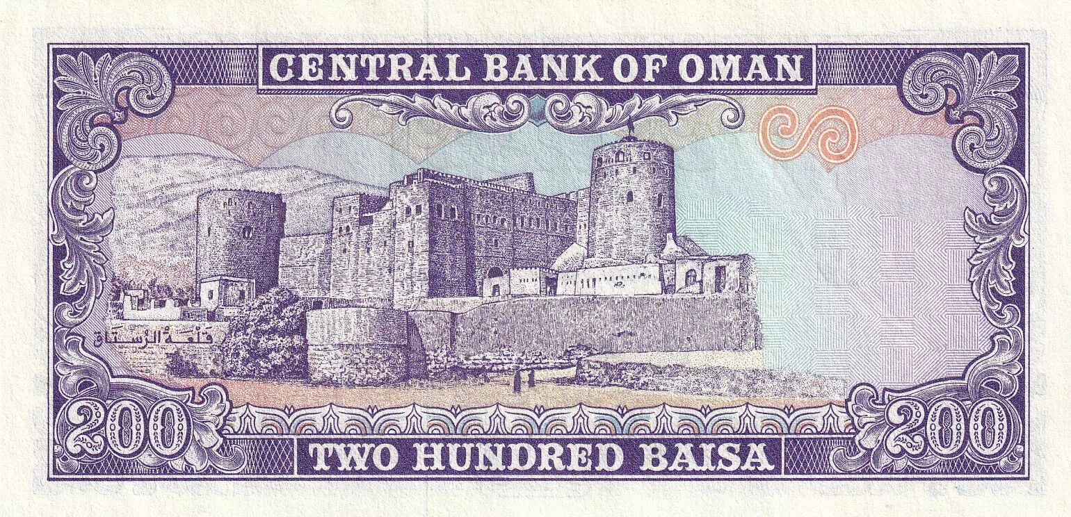 Banknote Oman 200 Baisa - Arms - Rustaq Forteress - 1985 - P.14
