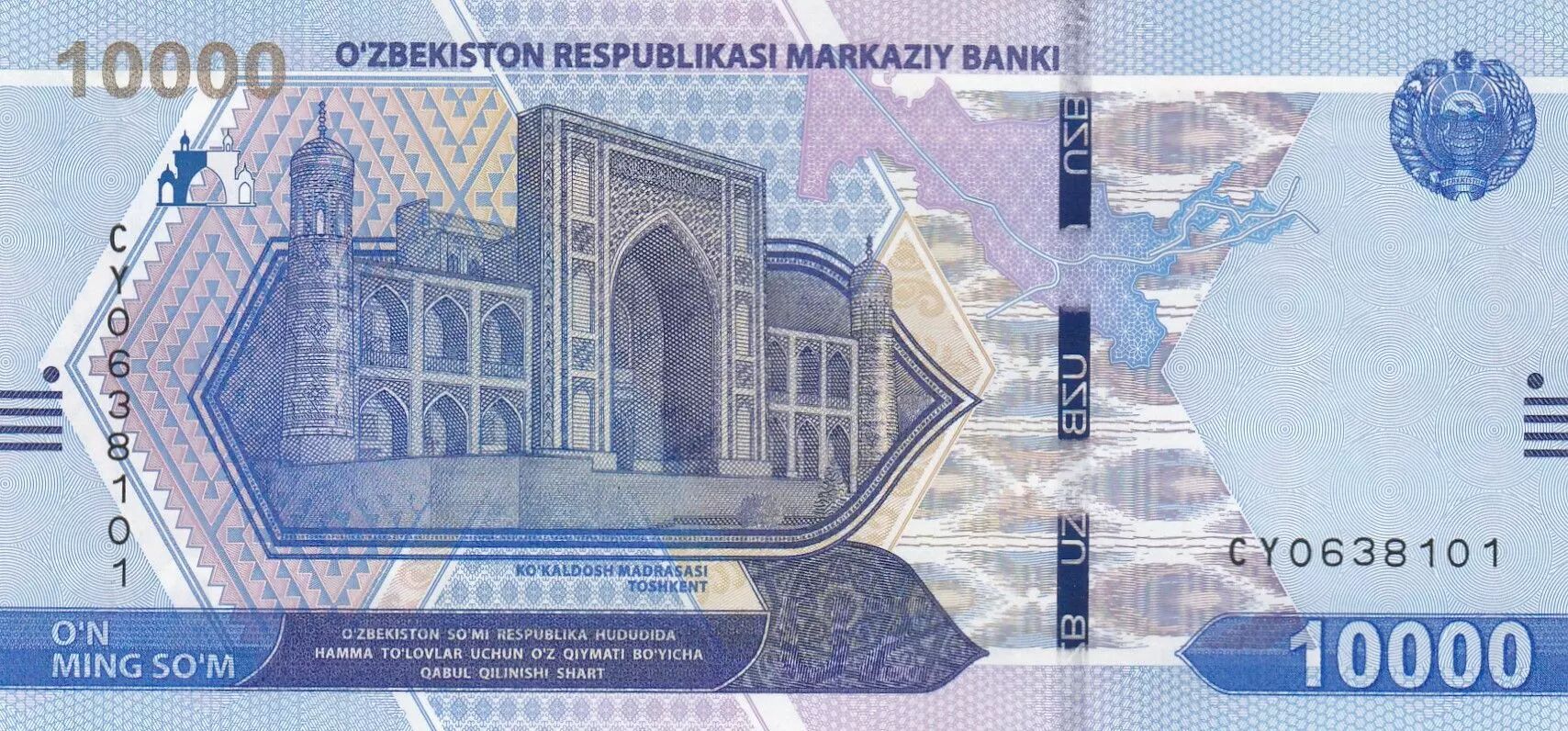 Accueil > Archivage > archivage-Billets du Monde > Ouzbékistan 10000 Som - Monuments archéologiques d'Afrosiyob - 2021 - Série CY