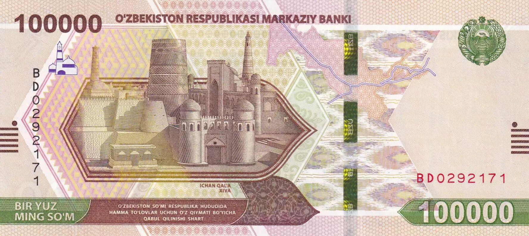 Accueil > Archivage > Ouzbékistan 100000 Som - Musée Ichan Qal'a à Khiva, Khorezm - 2021