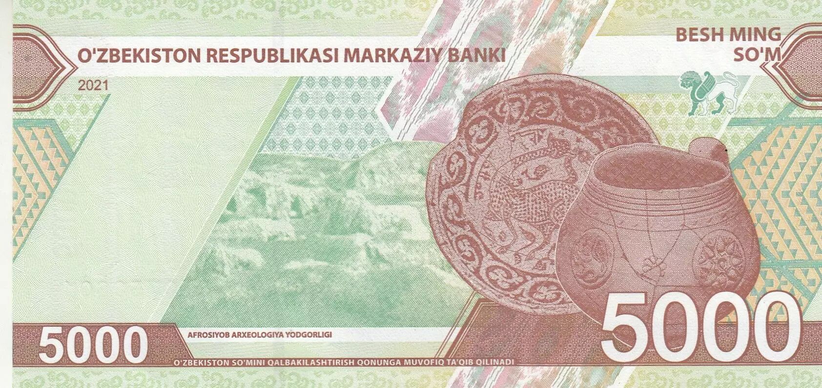 Billet Ouzbékistan 5000 Som - Monuments archéologiques d'Afrosiyob - 2021 - Série AV