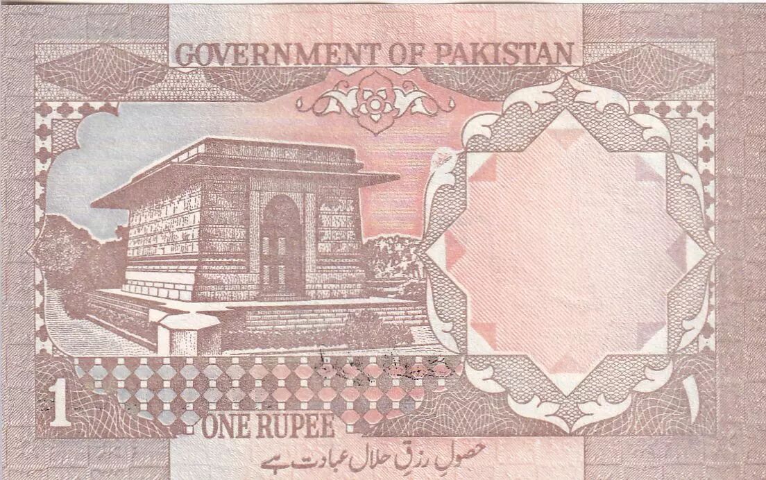Banknote Pakistan 1 Rupee Tomb of Allama Mohammed