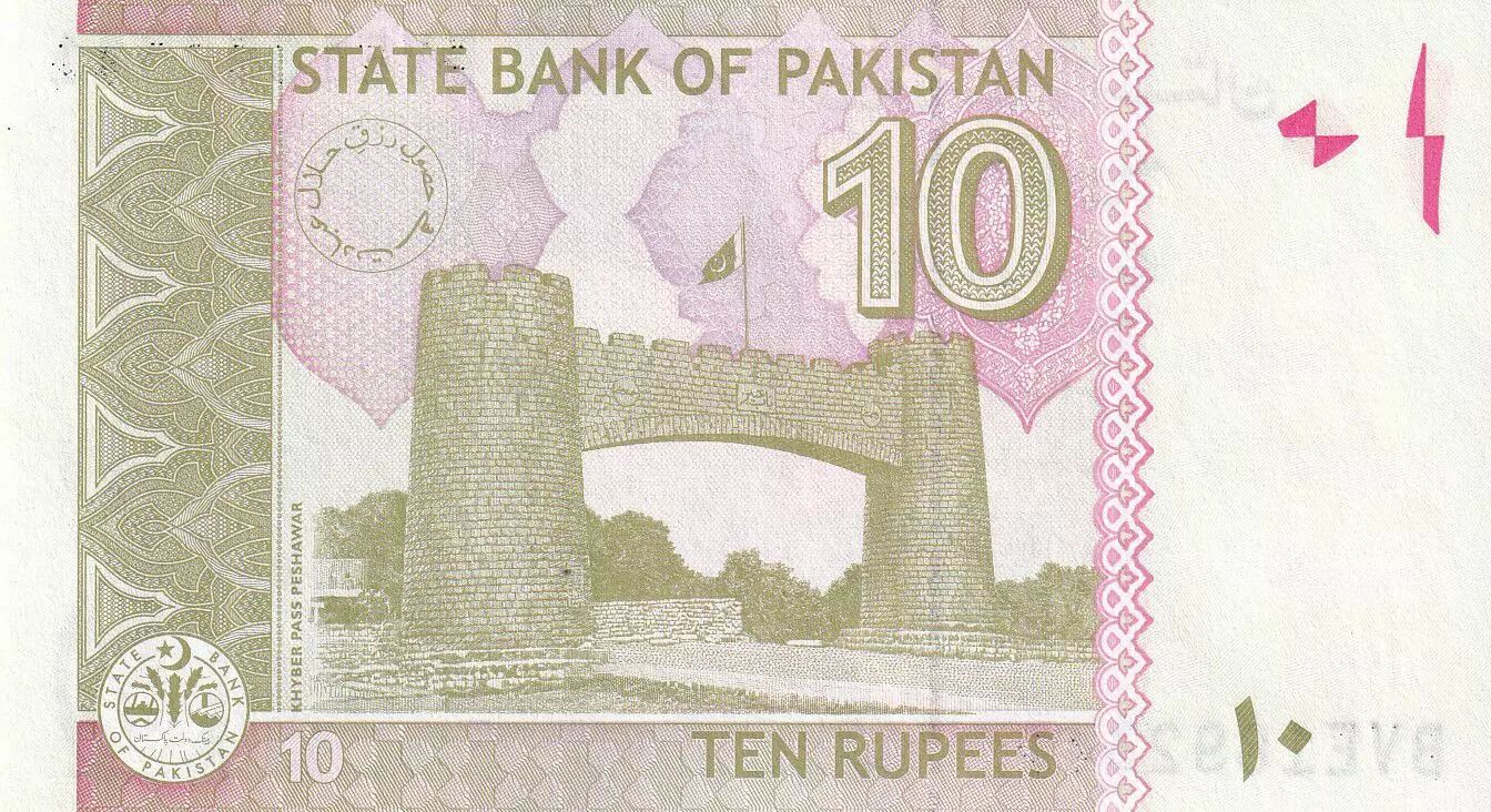 Banknote Pakistan 10 Rupees M. Ali Jinnah - Gate of Peshawar - 2021 - Serial BVE - P.NEW