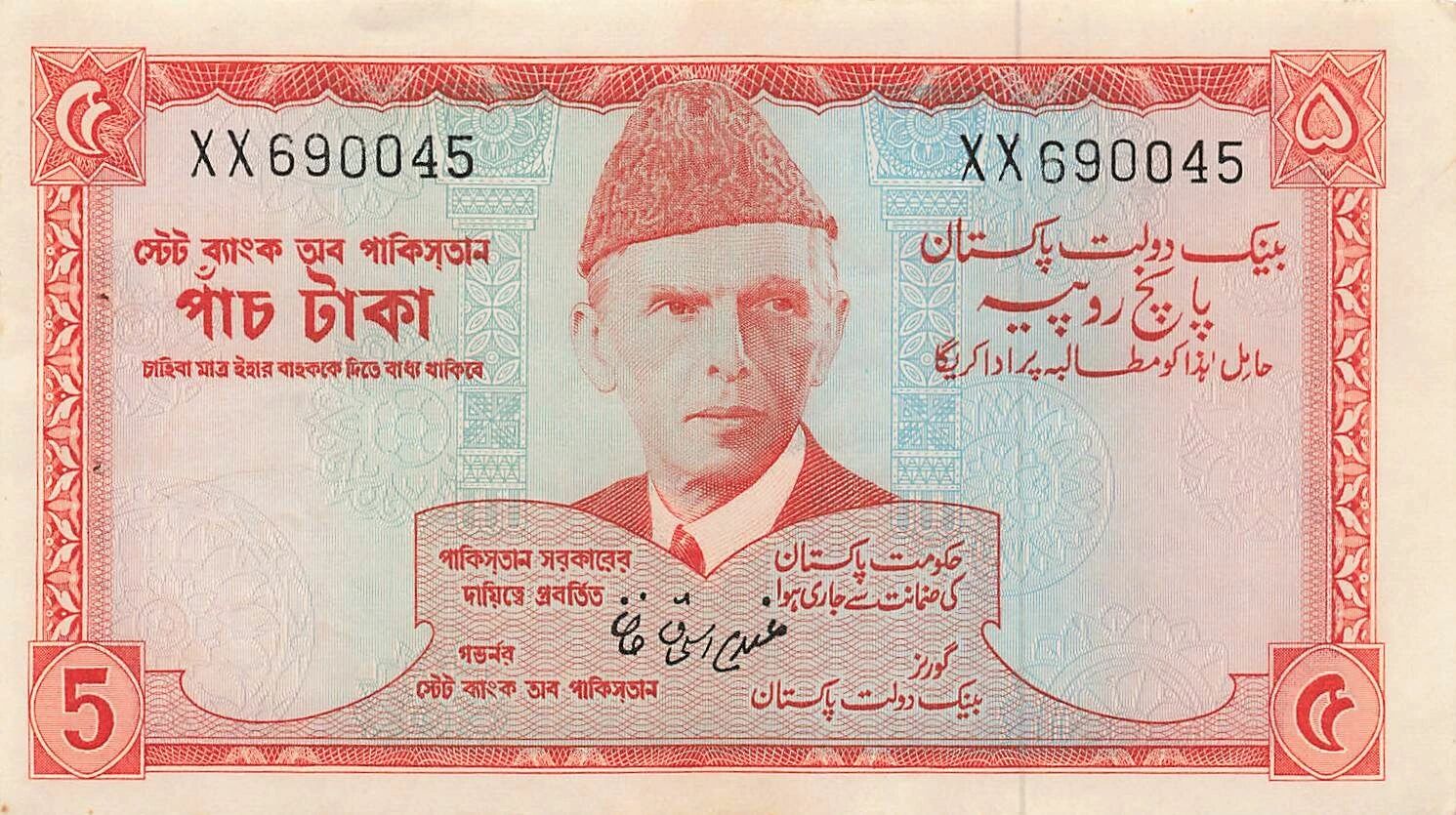 Banknote Pakistan 5 Rupees - ND (1972-1975) - Replacement - P.20
