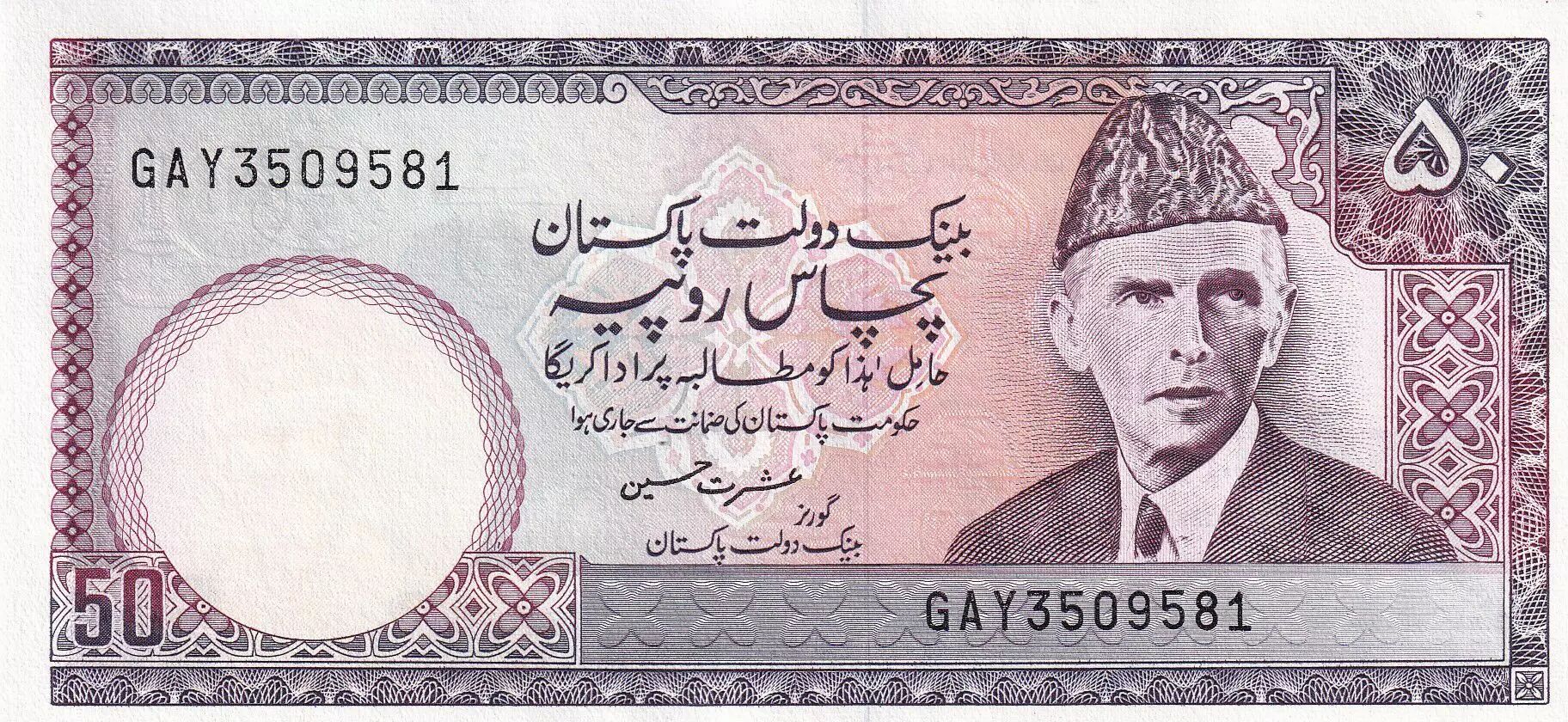 Banknote Pakistan 50 Rupees - M. Ali Jinnah - Lahore Fort - 1999 - Serial GAY - P.40