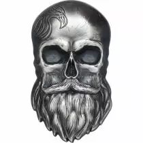 Cette Biker Skull (crâne de motard) pèse 31 11 g. et est en argent pu 999?. Elle bénéficie d'une frappe en Ultra High Relief. Sa frappe SmartMinting permet de mettre en valeur la finesse de la gravure ainsi que l'effet Antique qui fait resortir les volumes