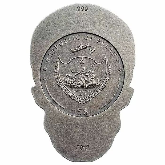 Pièce Palau 1 Once Argent Palau 2018 - Crâne de La Catrina (Dia de Muertos)