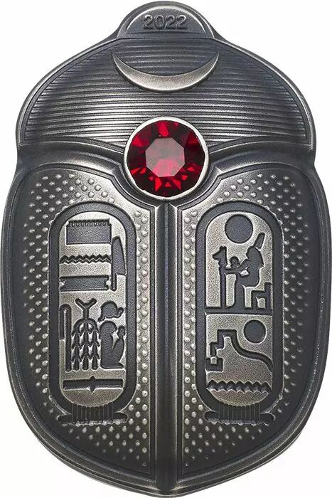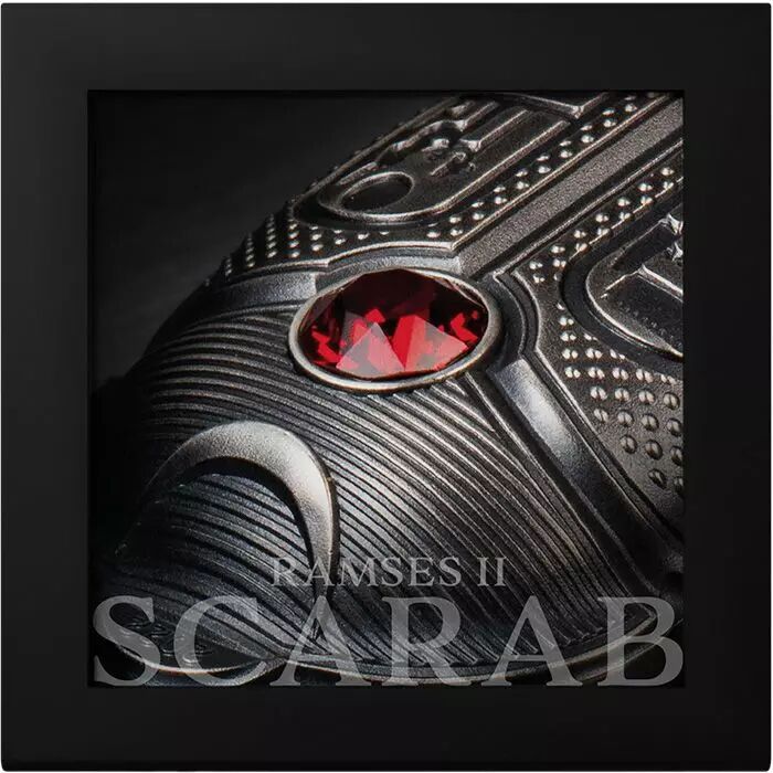 Après le succès de la première édition du Scarabée Palau rend maintenant hommage au pharaon Ramsès II. Le souverain égyptien était un dirigeant admiré par son peuple tant de son vivant que par la suite. La popularité de Ramsès a sans doute été alimentée par la prospérité de l'Égypte sous son règne et par ses talents de propagandiste. Parée d'un cristal rouge éblouissant la dernière édition révèle le nom de naissance du pharaon ainsi que le nom de son règne en hiéroglyphique.