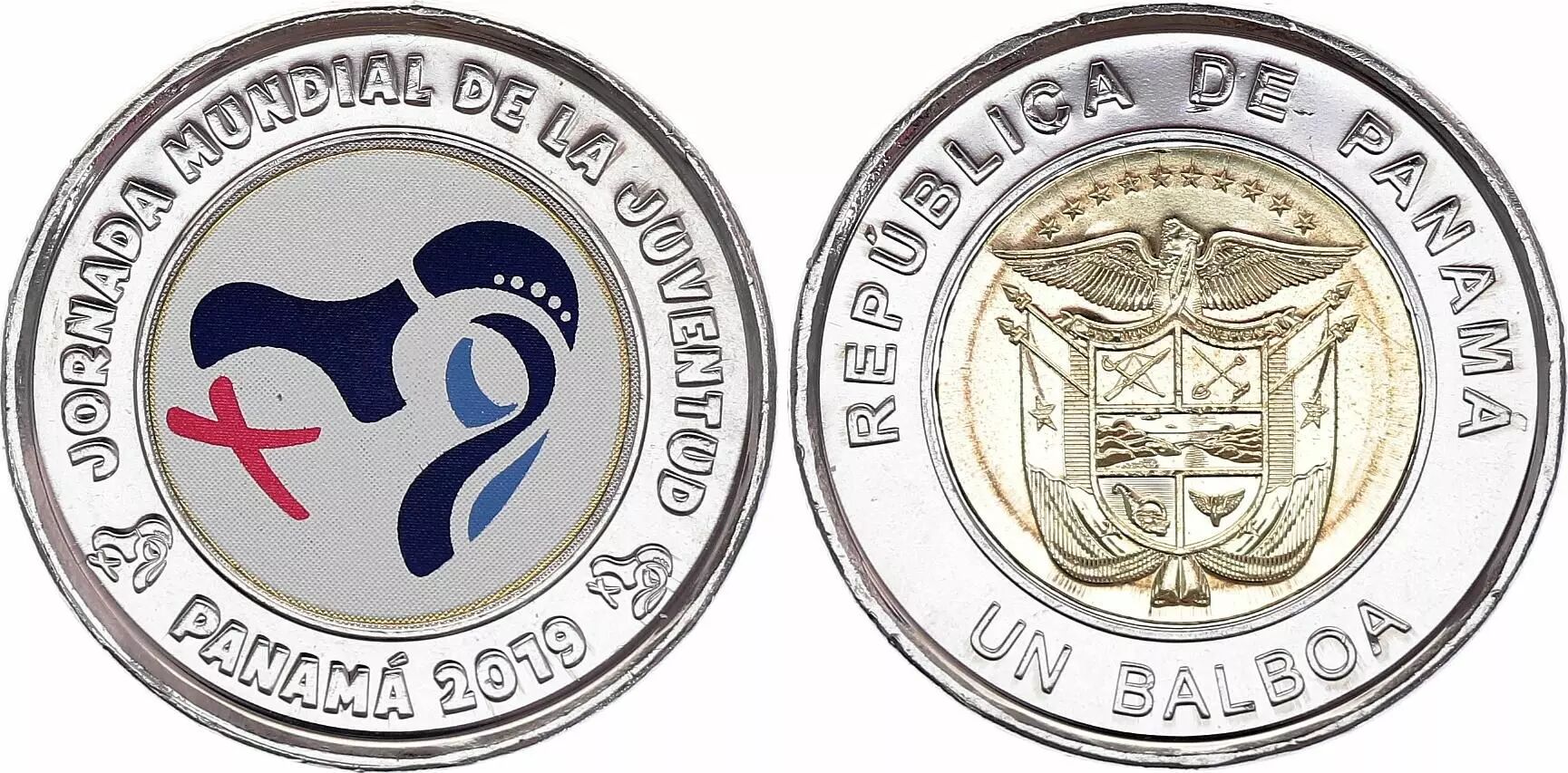 Home > World Coins > Currencies of the Americas > Panama > Panama 1 Balboa World Youth Day - 2019 Bimetal Colorised