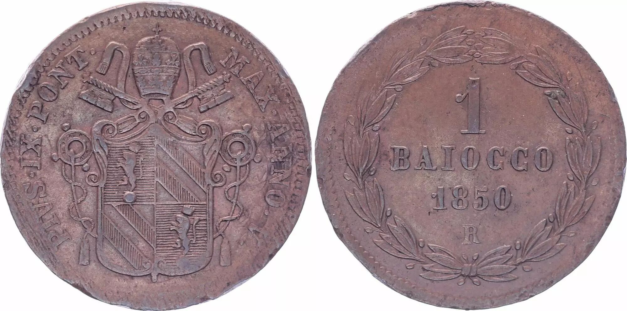 Coin Papal States 1 Baiocco - Pivs IX - 1850 R V