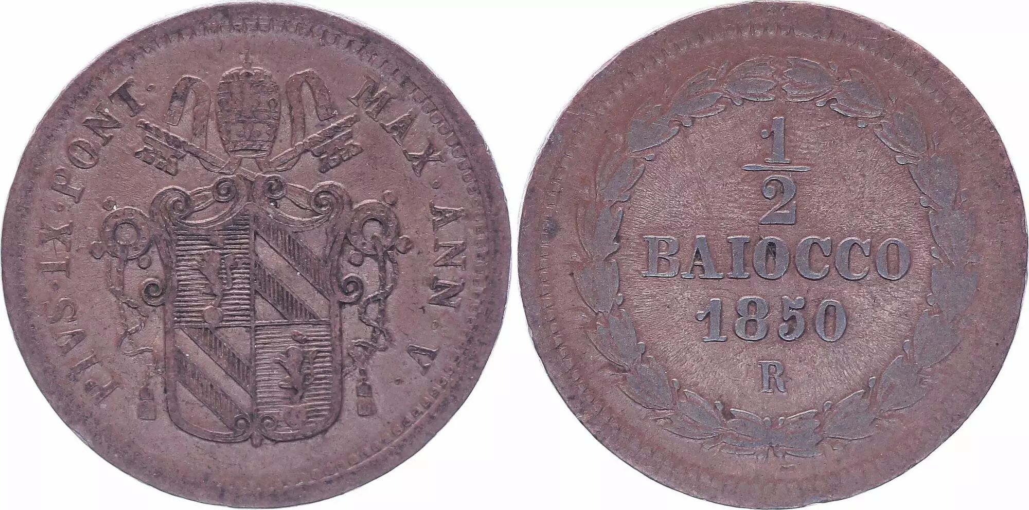 Coin Papal States 1/2 Baiocco - Pivs IX - 1850 R V
