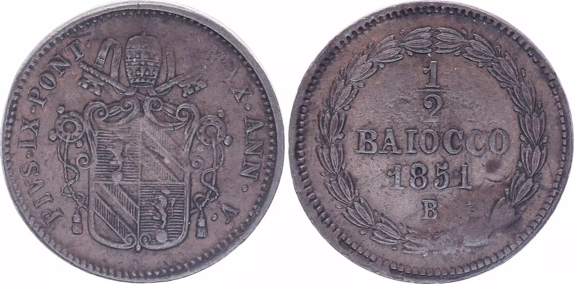 Coin Papal States 1/2 Baiocco - Pivs IX - 1851 B V