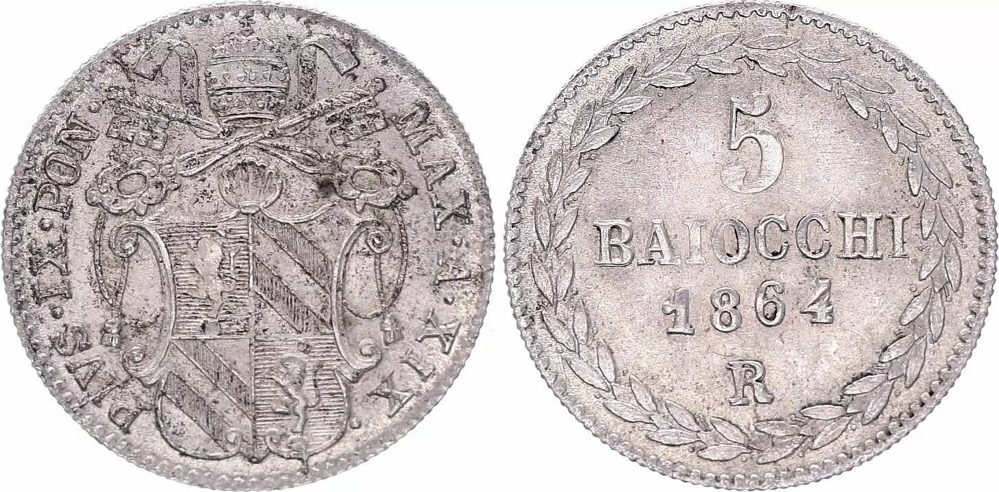 Home > > Papal States 5 Baiocchi - Pivs IX - 1864 R