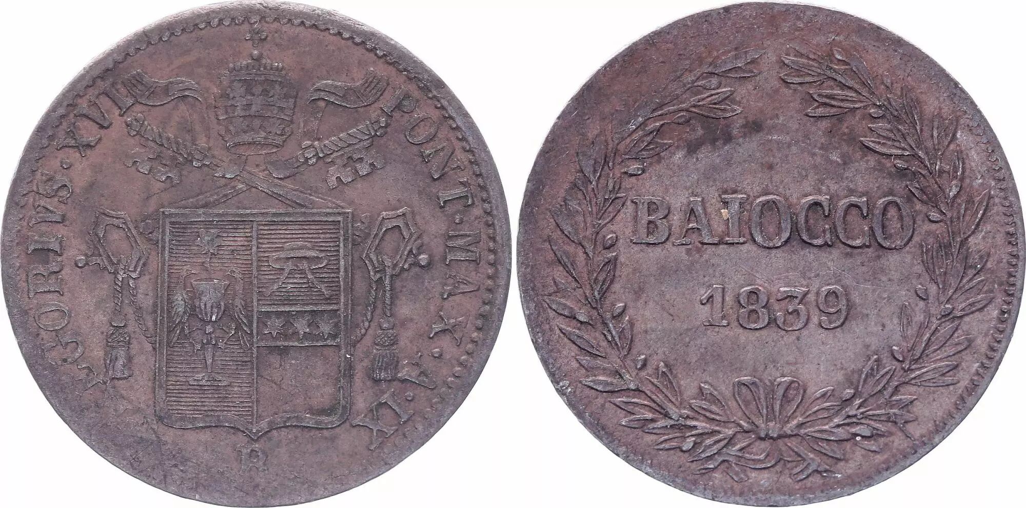 Coin Papal States Baiocco - Grégoire XVI - 1839 R IX