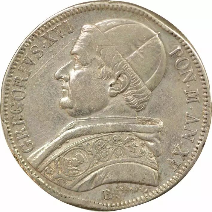 Coin Papal States Gregory XVI - Silver Scudo, Type 2 - 1845 R Rome