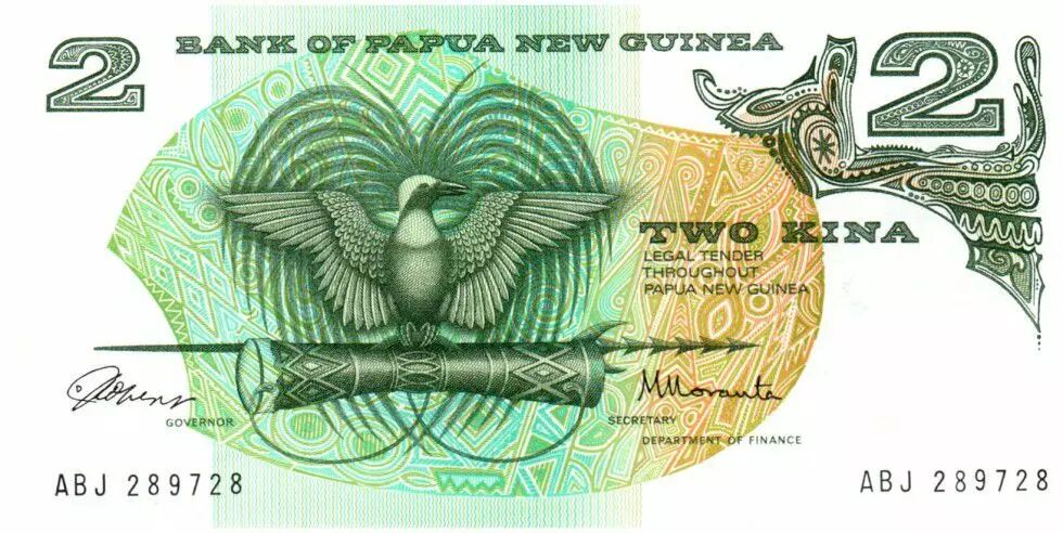 Billet Papouasie-Nouvelle-Guinée 2 Kina Oiseau de Paradis - Artisanat - 1975