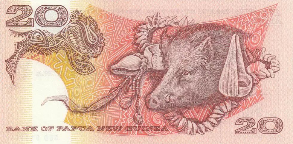 Accueil > Billets du Monde > Billets d'Océanie > Papouasie-Nouvelle-Guinée > Papouasie-Nouvelle-Guinée 20 Kina Oiseau de Paradis - Sanglier - Série SBD - 1988