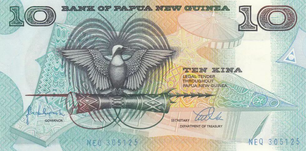 Home > > Papua New Guinea 10 Kina Bird of Paradise - Artifacts - Serial NEQ - 1988