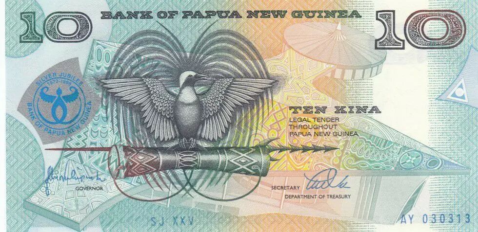 Banknote Papua New Guinea 10 Kina Bird of Paradise - Silver Jubilee - Serial AY - 1998