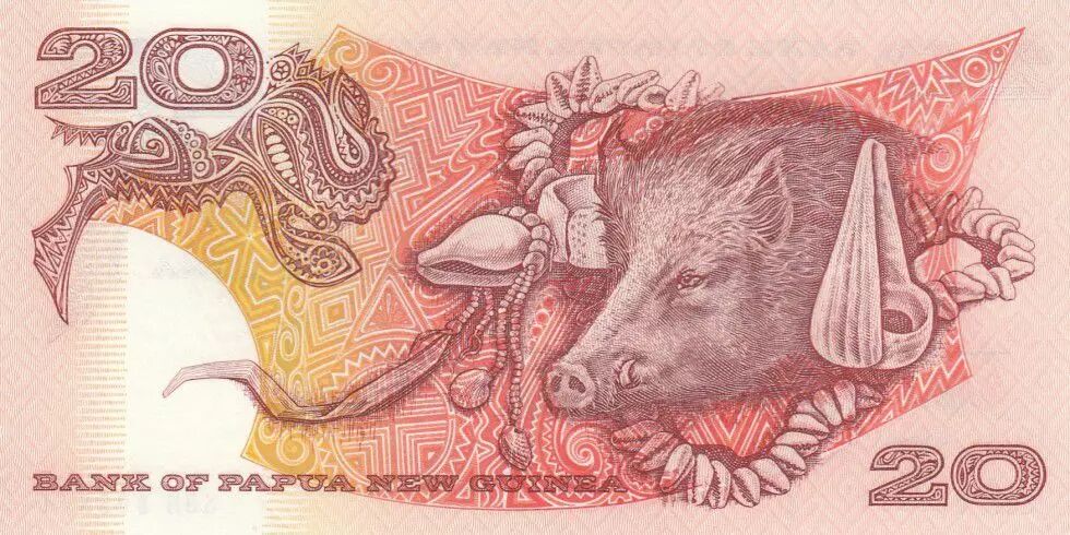 Home > > Papua New Guinea 20 Kina Bird of Paradise - Head of boar - Serial SBH - 1988