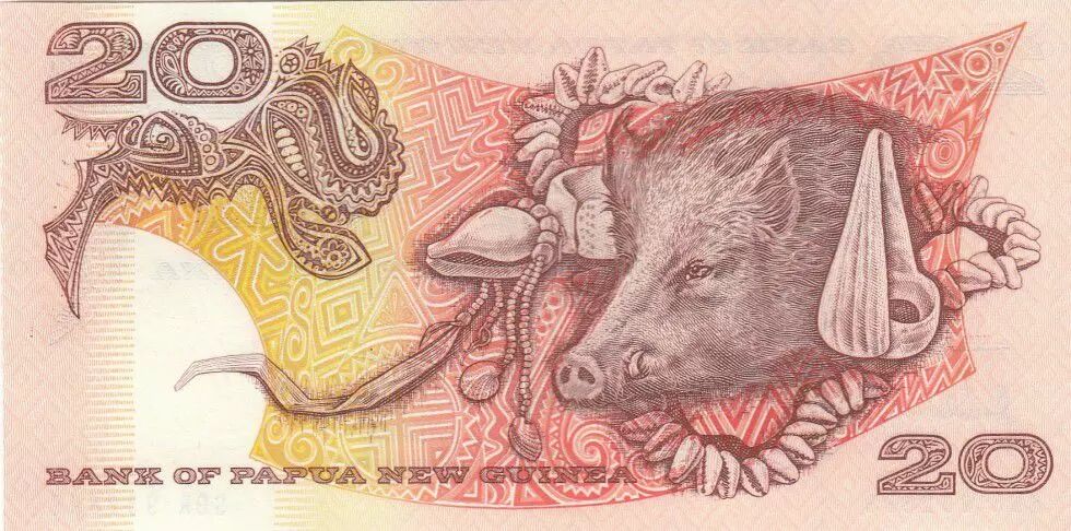 Home > > Papua New Guinea 20 Kina Bird of Paradise - Head of boar - Serial SBR - 1988
