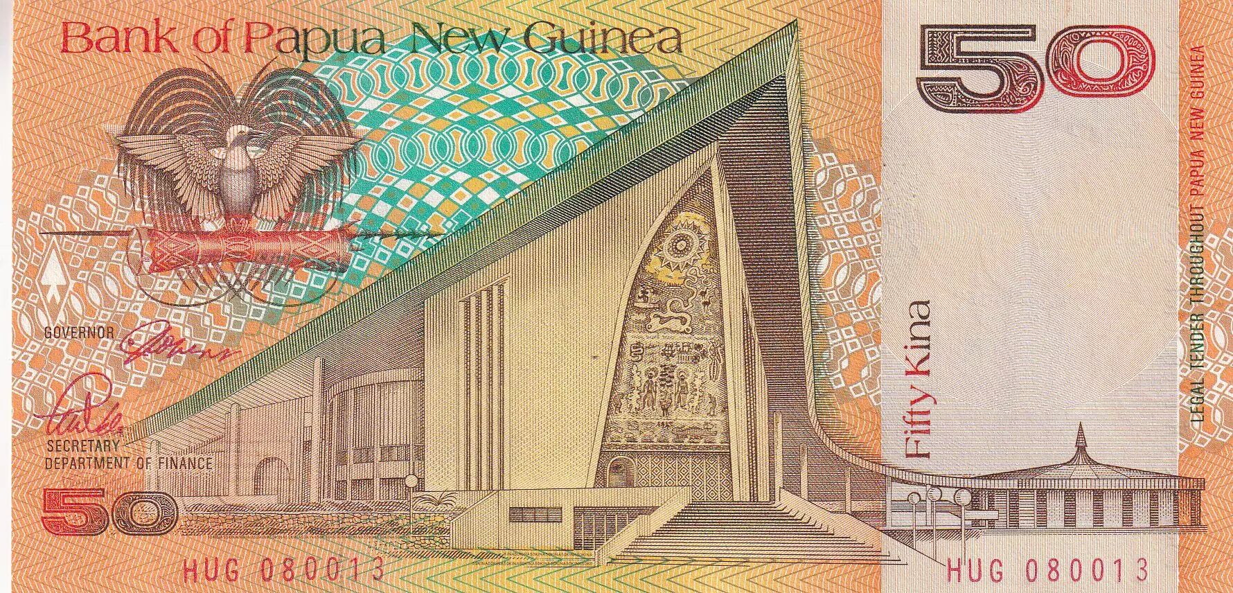 Home > World Banknotes > Oceania Banknotes > Papua New Guinea > Papua New Guinea 50 Kina - Parliament - M. Somare - ND (1988) - Serial HUG - P.10a