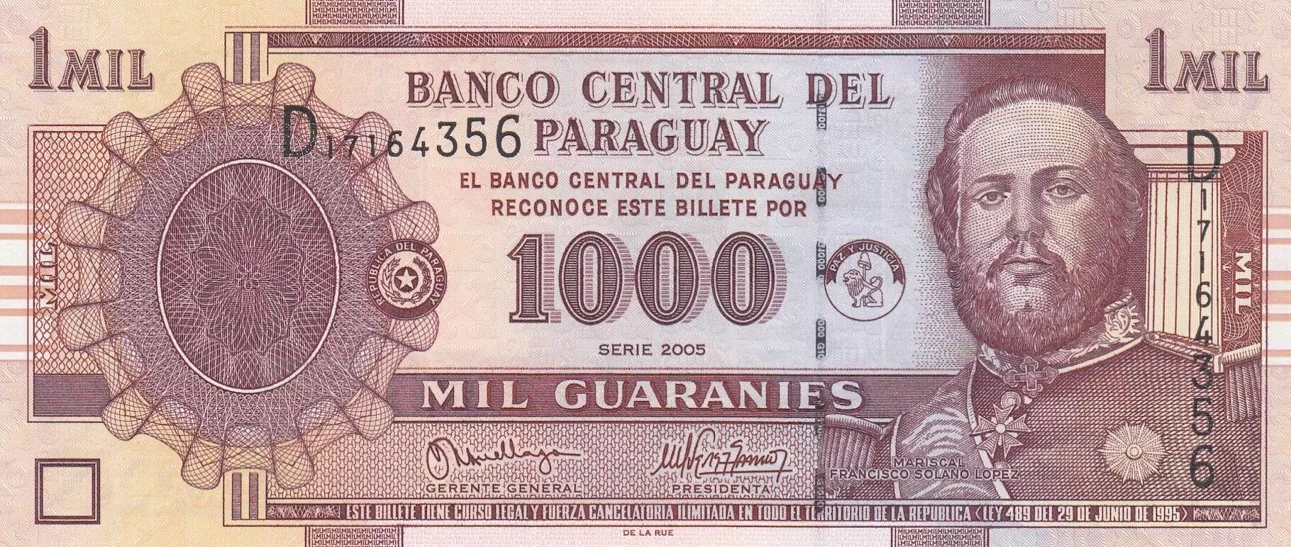 Banknote Paraguay 1000 Guaranies - Francisco Solano Lopez - 2005 - Serial D