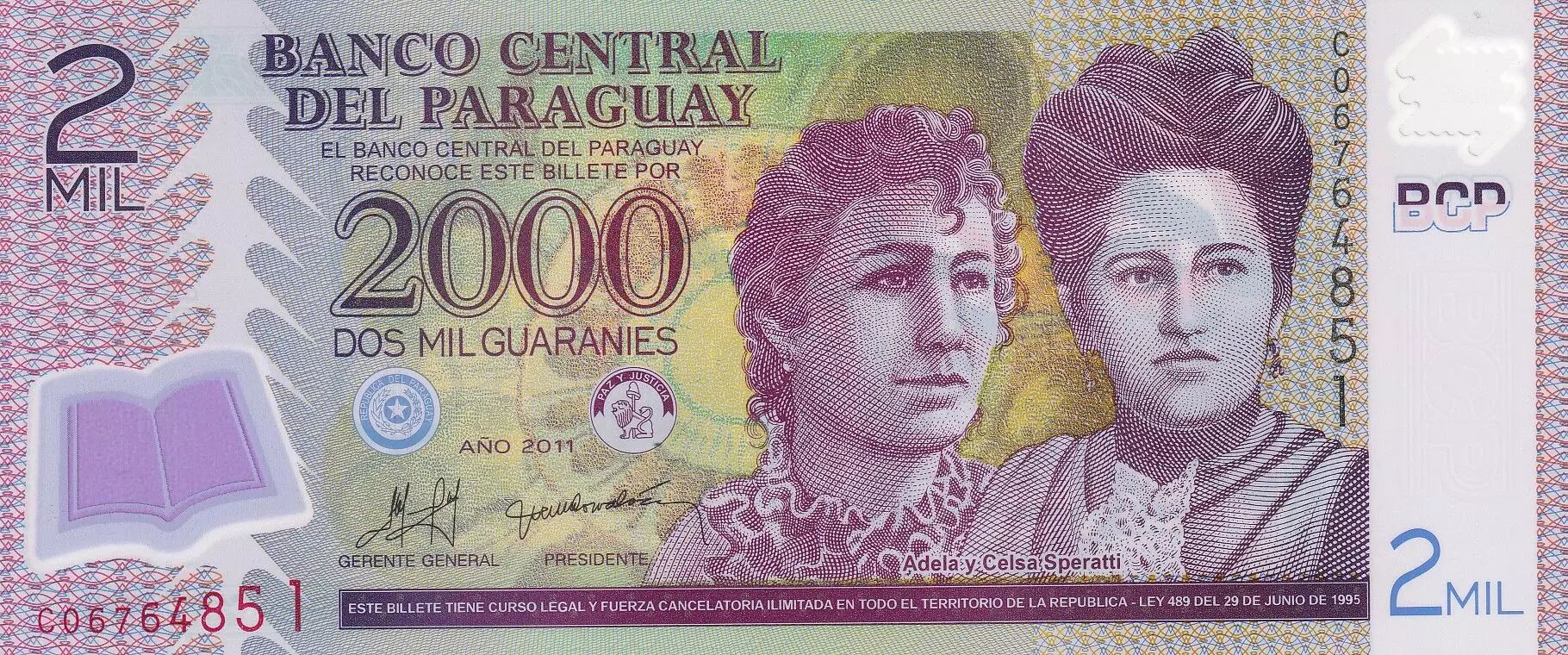 Banknote Paraguay 2000 Guaranies - Adela y Celsa Speratti - 2011 - Serial C - P.228