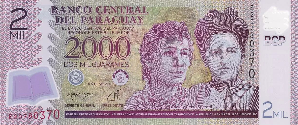 Accueil > Billets du Monde > Billets d'Amérique > Paraguay > Paraguay 2000 Guaranies - Adela y Celsa Speratti - 2023 - Série E
