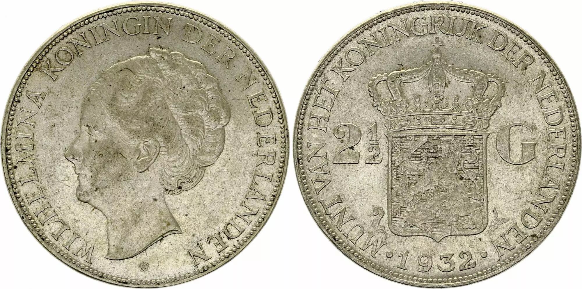 Pièce Pays-Bas 2 1/2 Gulden, Wilhelmina I - 1932
