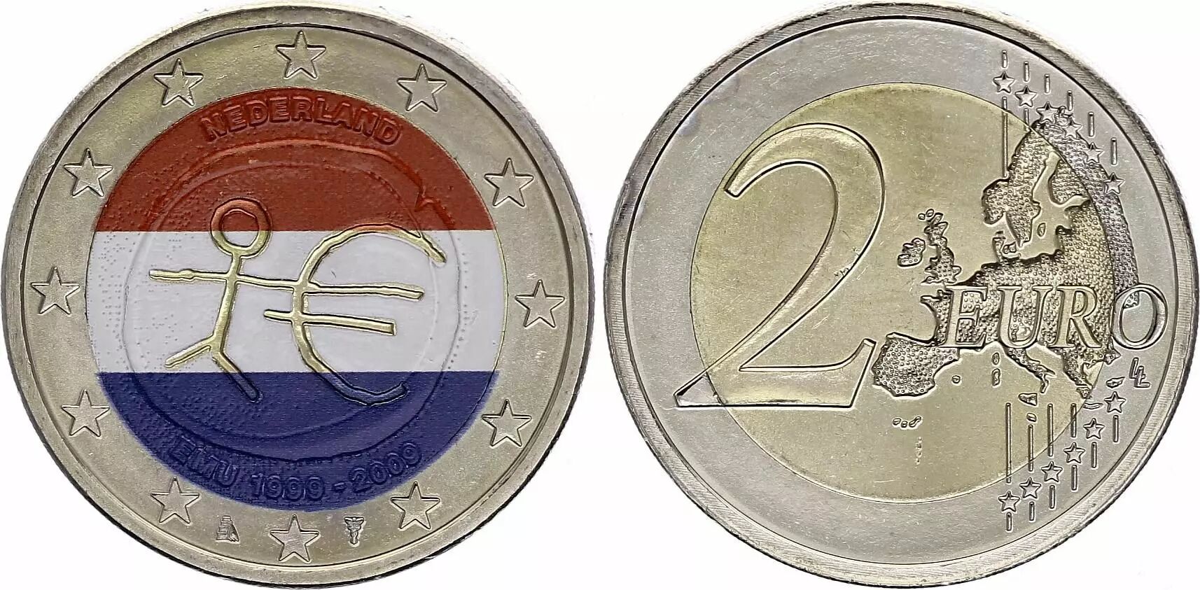 Accueil > > Pays-Bas 2 Euros - 10 ans UEM - Colorisée - 2009 - Bimétallique