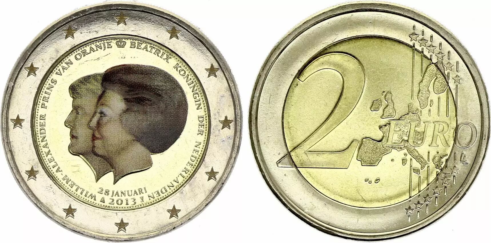 Pièce Pays-Bas 2 Euros - Abdication de la reine Béatrix - Colorisée - 2013