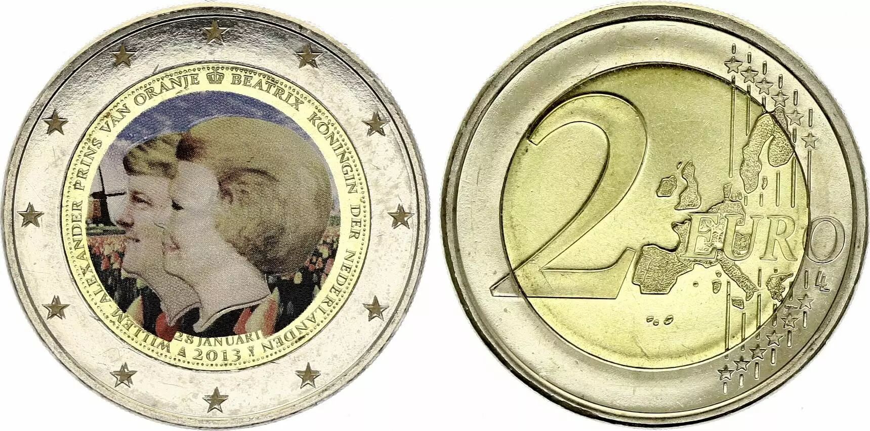 Pièce Pays-Bas 2 Euros - Abdication de la reine Béatrix - Colorisée - 2013