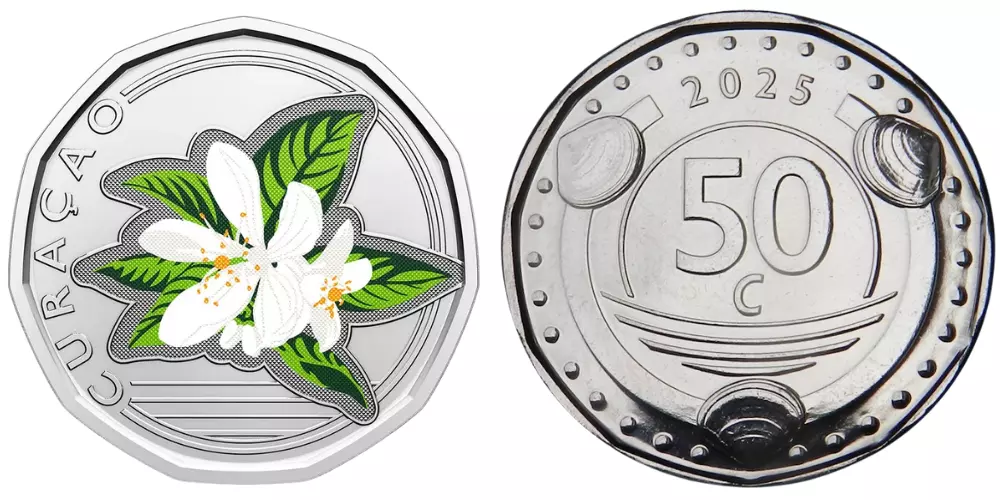 Il s'agit d'une pièce de monnaie des Pays-Bas, d'une valeur nominale de 50 centimes d'euro, émise en 2025 et dédiée à Curaçao. La pièce est fabriquée en acier plaqué nickel, pesant 4,45 grammes et ayant un diamètre de 22,25 millimètres. Sa tranche est lisse.