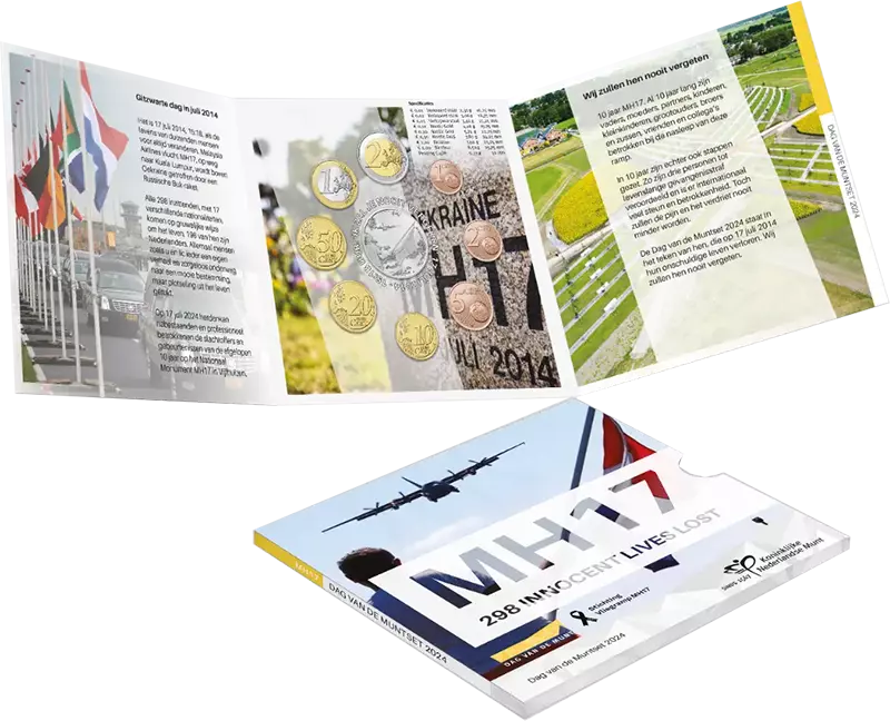 La catastrophe aérienne du vol MH17 remonte déjà à 10 ans en 2024, mais elle est toujours d'actualité. Les proches des victimes continuent de se battre pour que justice soit faite. Des mesures ont déjà été prises dans ce sens, mais la douleur et le chagrin ne s'atténueront jamais. Le coffret de la Journée de la Monnaie 2024 est donc dédiée à ceux qui ont perdu la vie de manière innocente le 17 juillet 2014.