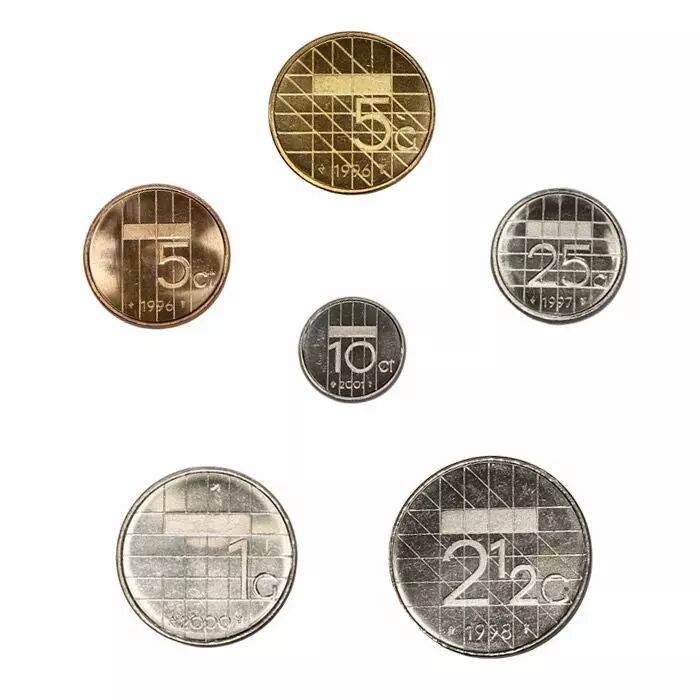 Série 6 pièces de 0 05 à 5 Gulden émises par les Pays Bas avant l'euro.