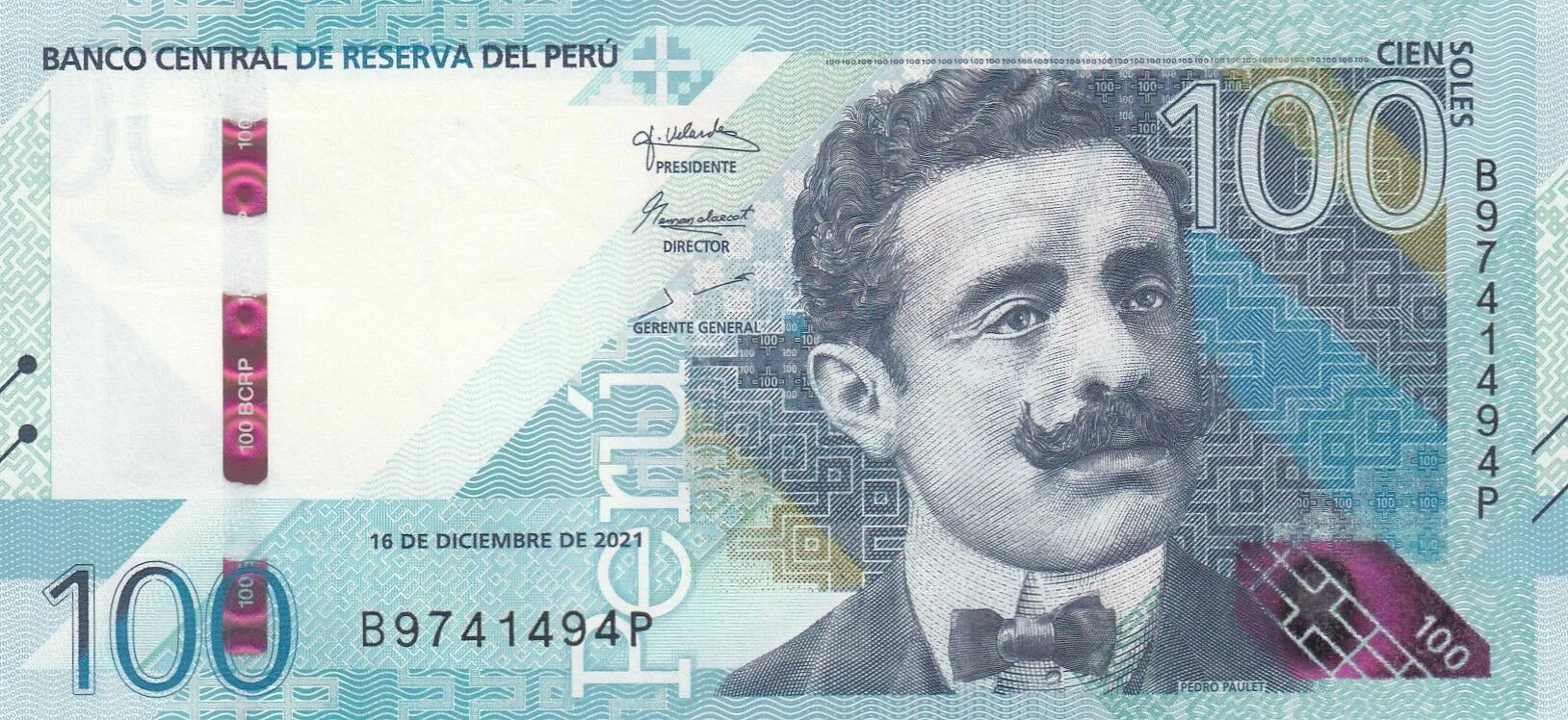 Le billet de banque de 100 Soles, émis par le Pérou entre 2019 et 2021, fait partie de la série B-P. Il représente Pedro Paulet, une figure marquante de l'histoire péruvienne. La valeur nominale du billet est de 100 soles.
