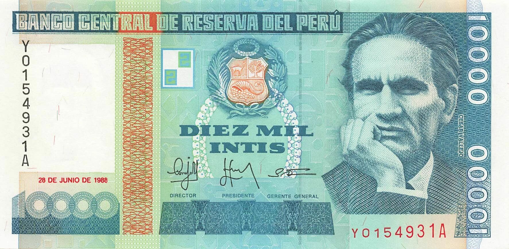 Accueil > Billets du Monde > Billets d'Amérique > Pérou > Pérou 10000 Intis - 1988 - Remplacement - P.140