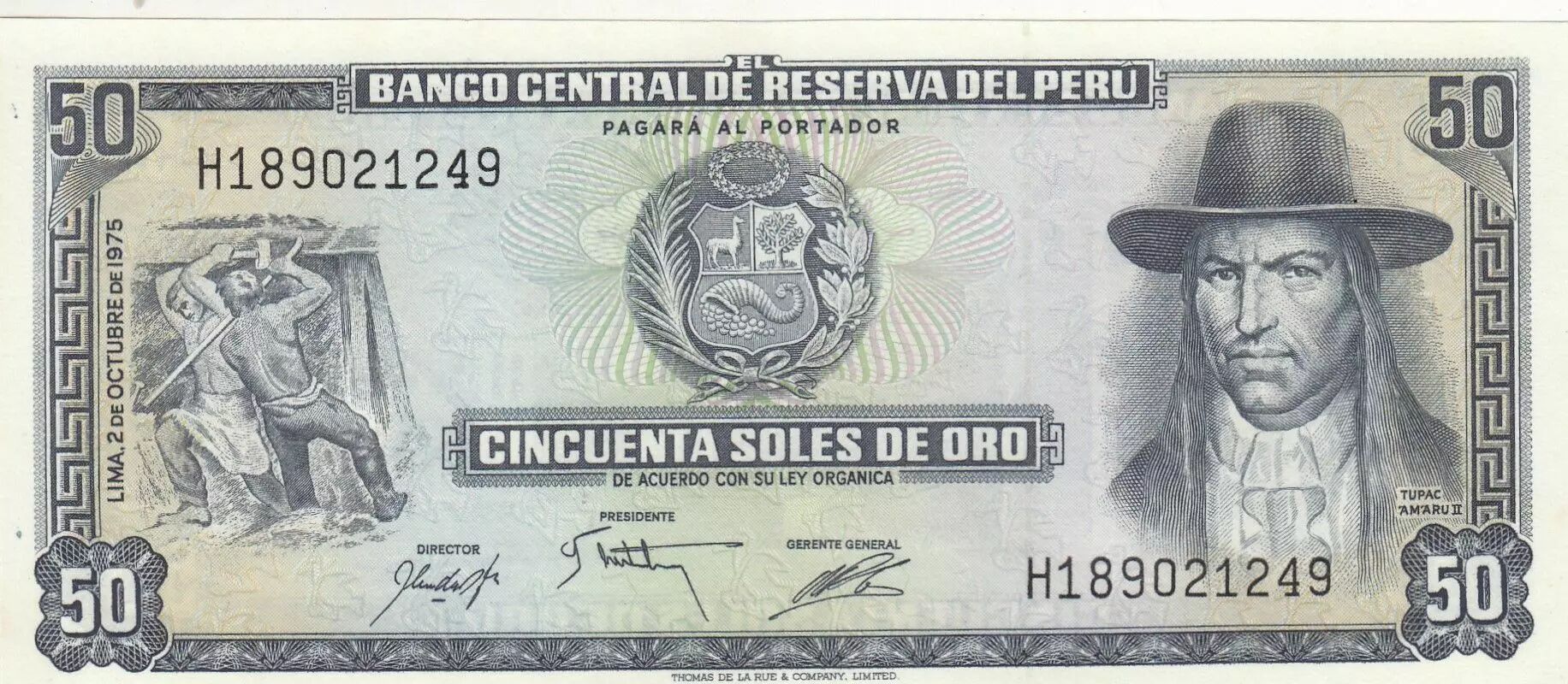 Accueil > Archivage > archivage-Billets du Monde > Pérou 50 Soles - Tupac Amaru II - 02-10-1975 - Série H