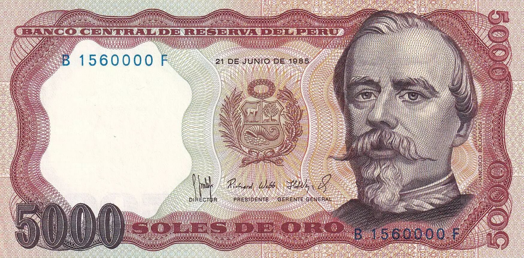 Accueil > Archivage > Pérou 5000 Intis - Francisco Bolognesi - Mineurs - 21-06-1985 - PNEUF - P.117c