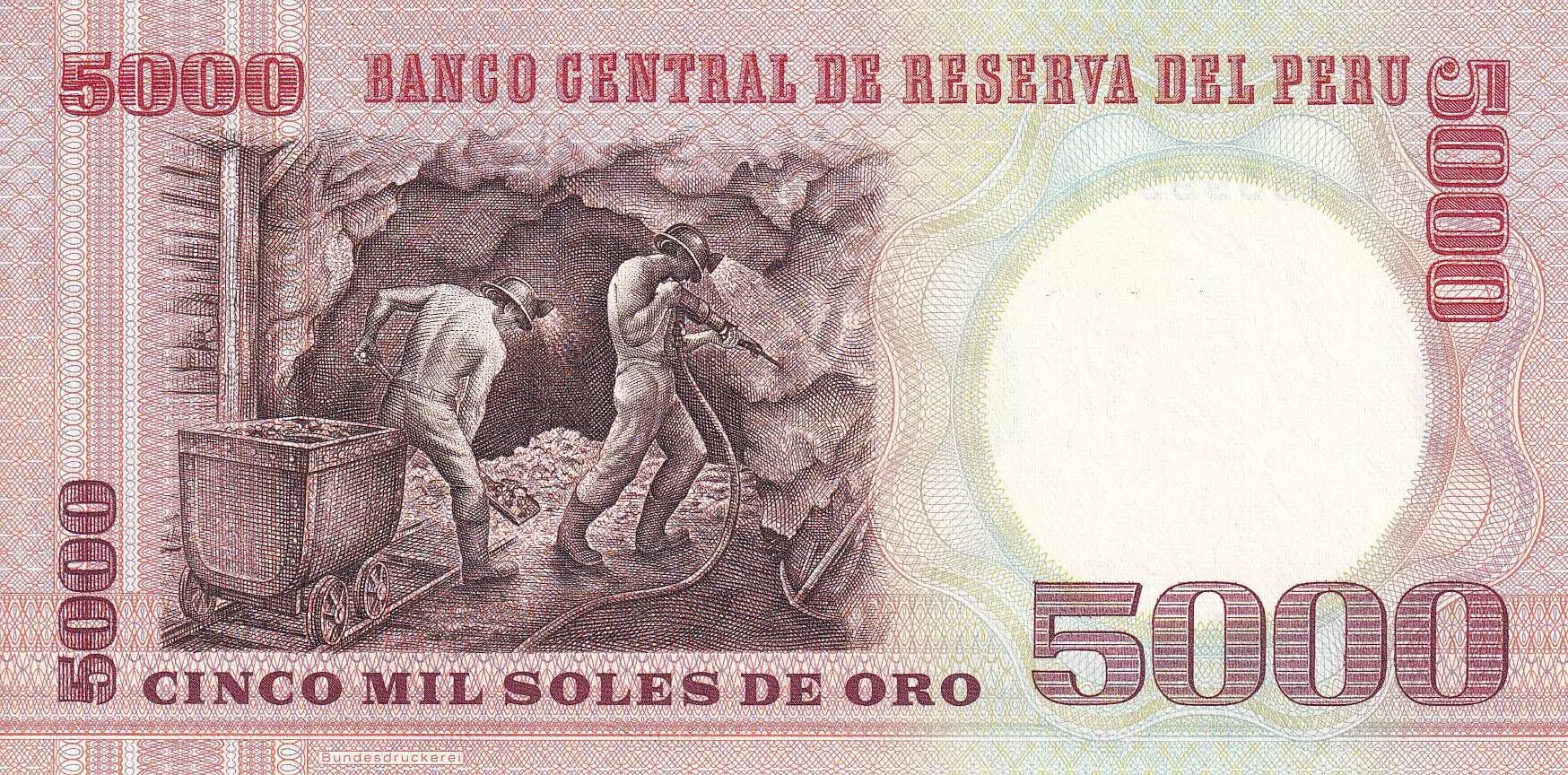 Billet Pérou 5000 Intis - Francisco Bolognesi - Mineurs - 21-06-1985 - PNEUF - P.117c