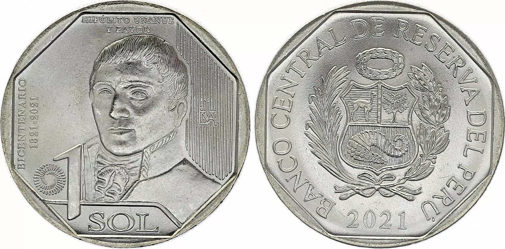 Home > World Coins > Currencies of the Americas > Peru > Peru 1 Sol - Hipólito Unanue y Pavón - 2021