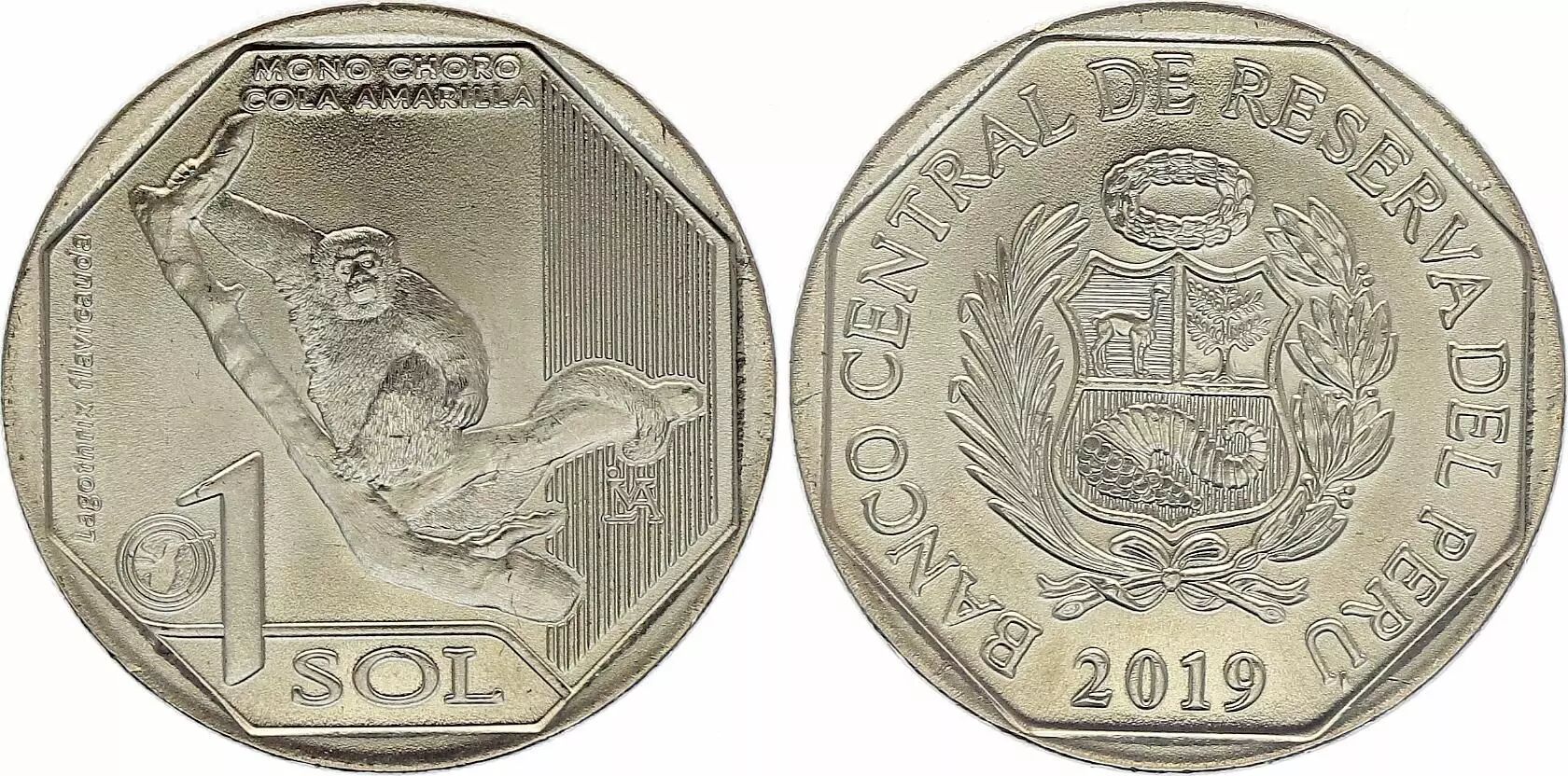 Coin Peru 1 Sol - Mono Choro Cola Amarilla - 2019