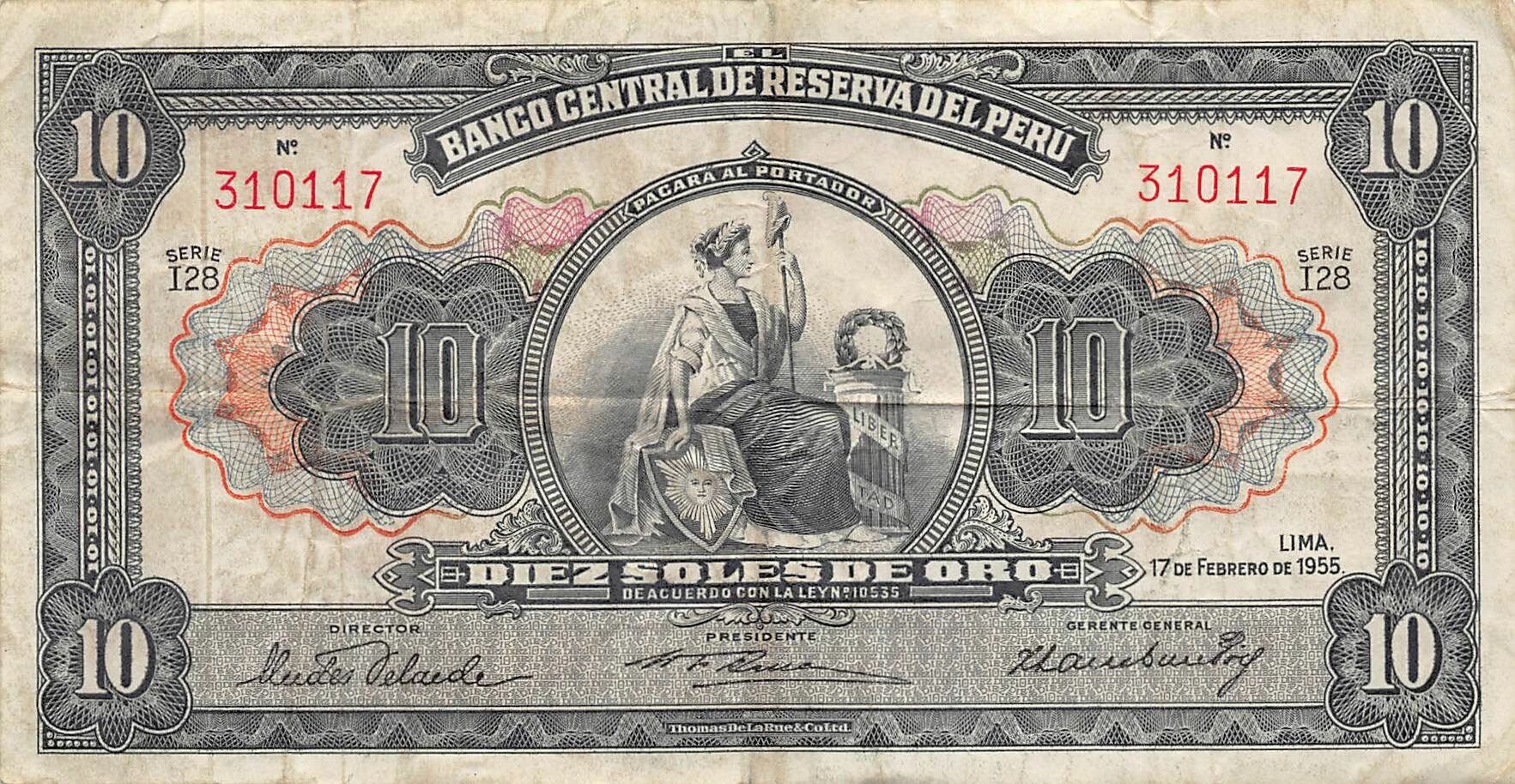 Home > > Peru 10 Soles - Liberty - 17-02-1955 - P.71