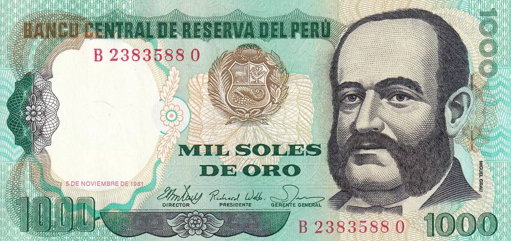 Banknote Peru 1000 Soles de Oro - Miguel Grau - Marins - 05-12-1981 - UNC - P.122