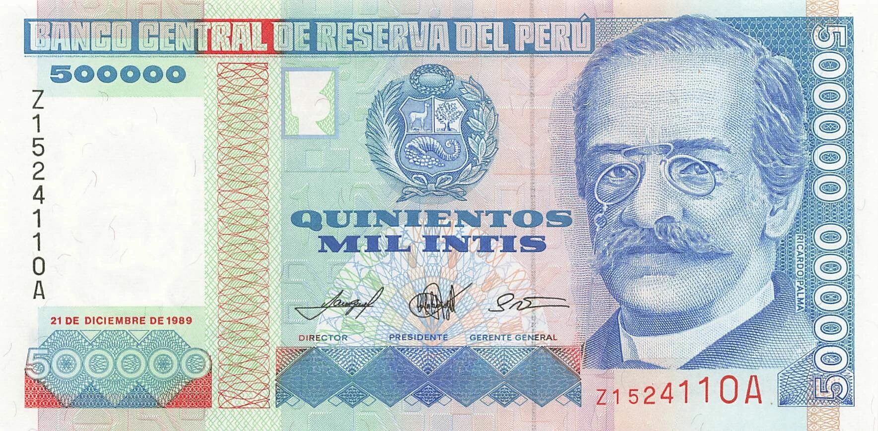 Home > World Banknotes > American Banknotes > Peru > Peru 500000 Intis - ND (1989) - Replacement - P.147