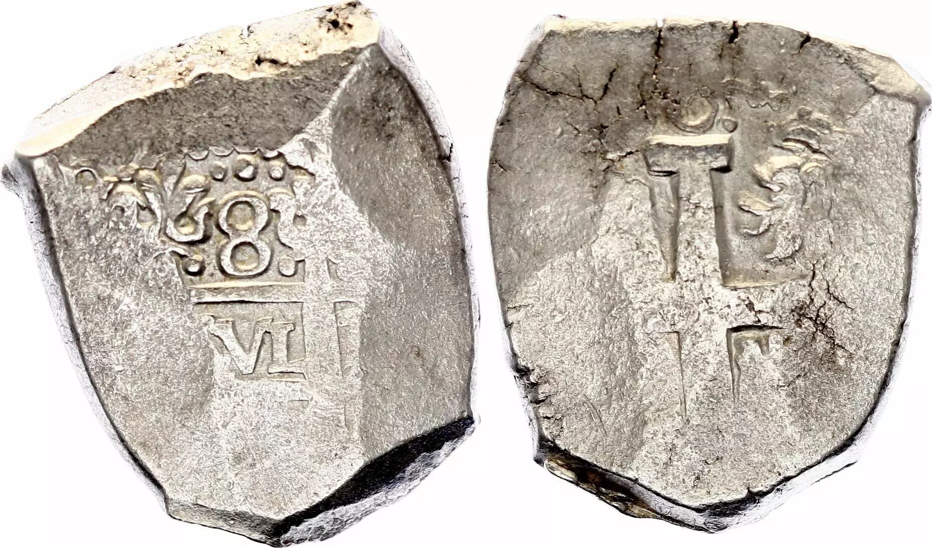During his reign, mints in Mexico, Peru, Bolivia, and other parts of Spanish America continued to produce these coins, with the Lima mint being particularly important for the production of 8-reales "Cobs" between 1747 and 1751. These coins were characterized by their irregular shape, struck by hand, as well as a distinctive design: the obverse featured a cross surrounded by the symbols of the kingdoms of Castile and León, while the reverse depicted the columns of Hercules with the inscription "PLVS VLTRA," symbolizing the expansion of the Empire. They were struck from silver mainly sourced from the mines of Potosí and Mexico.