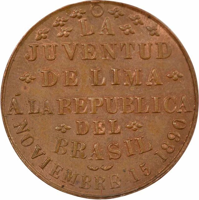 Reverse : LA / JUVENTUD / DE LIMA / A LA REPUBLICA / DEL / BRASIL / NOVIEMBRE 15 1890