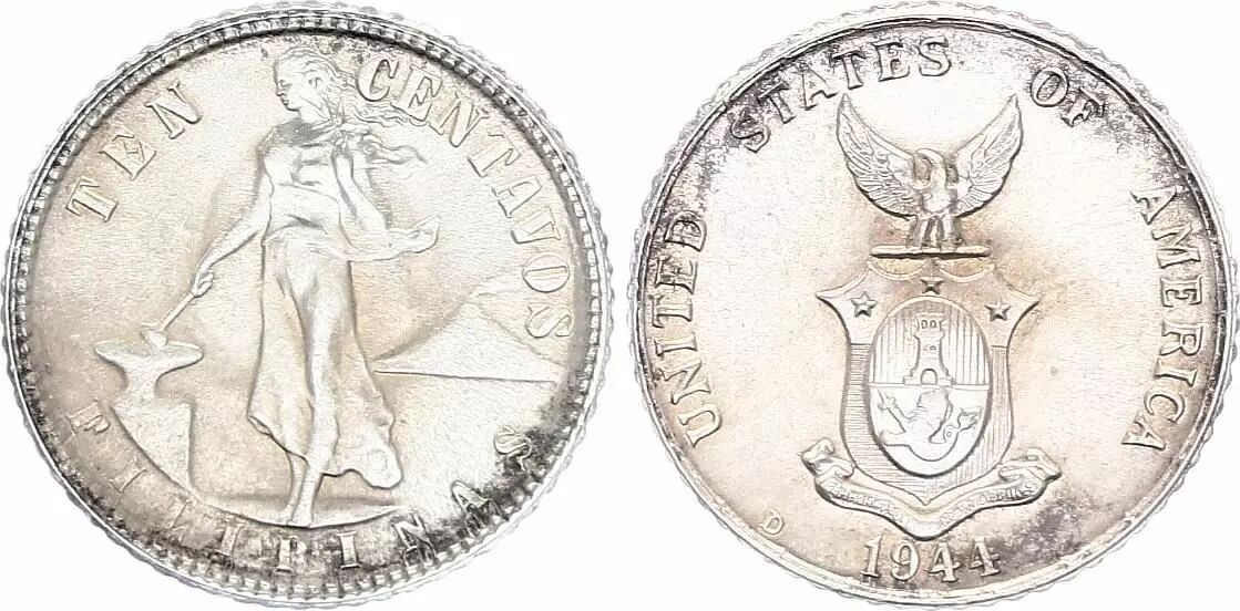 Accueil > Monnaies du monde > Monnaies d'Asie > Philippines > Philippines 10 Centavos Administration Américaine - 1944 D