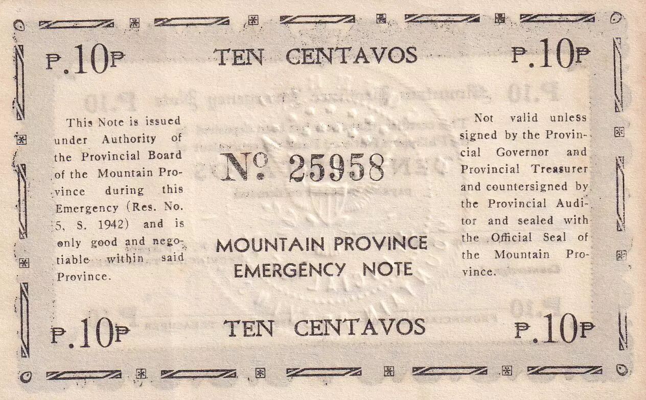 Billet Philippines 10 Centavos - Mountain - 1942 - P.S592
