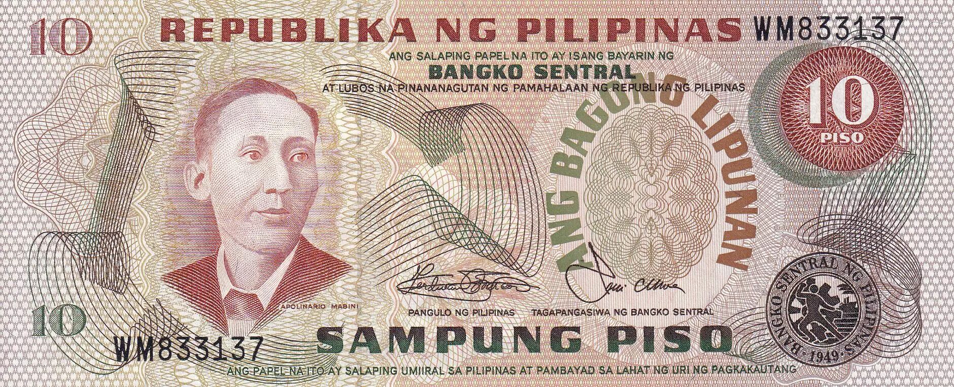 Billet Philippines 10 Piso - A. Mabini - Eglise - 1978 - NEUF - P.161b
